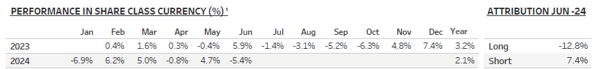 Although strong relative returns, the absolute performance was weak in June. In some ways, it was a mirror image of May, where all but the two hydrogen themes contributed positively to the NAV of the fund.
